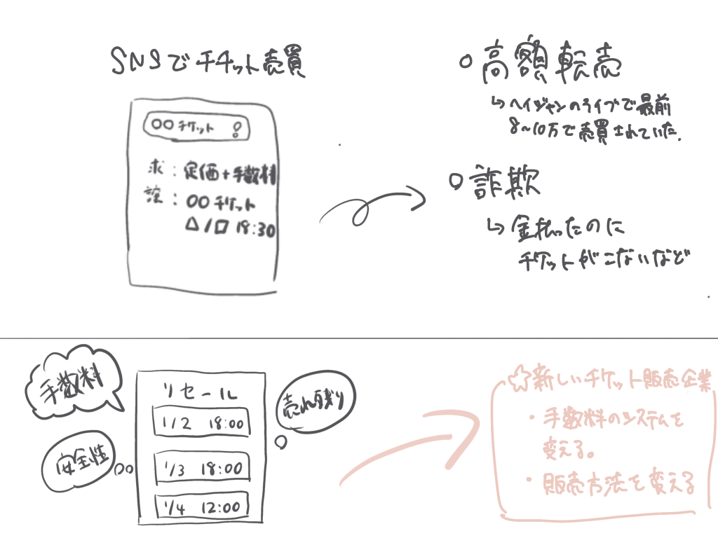 そこでもうチケット販売とリセールをおなじ企業でやった方が良いのではないかと考えました!